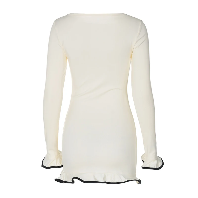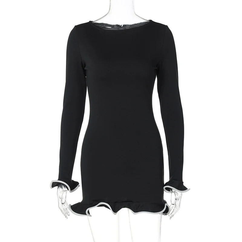 Elegant Round Neck Pleat Long Sleeve New Women's Dresses Casual Slim Pink Black White Short Dresses Lady Chic Party Street Robes
