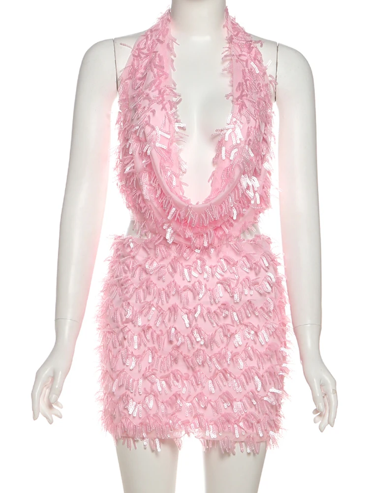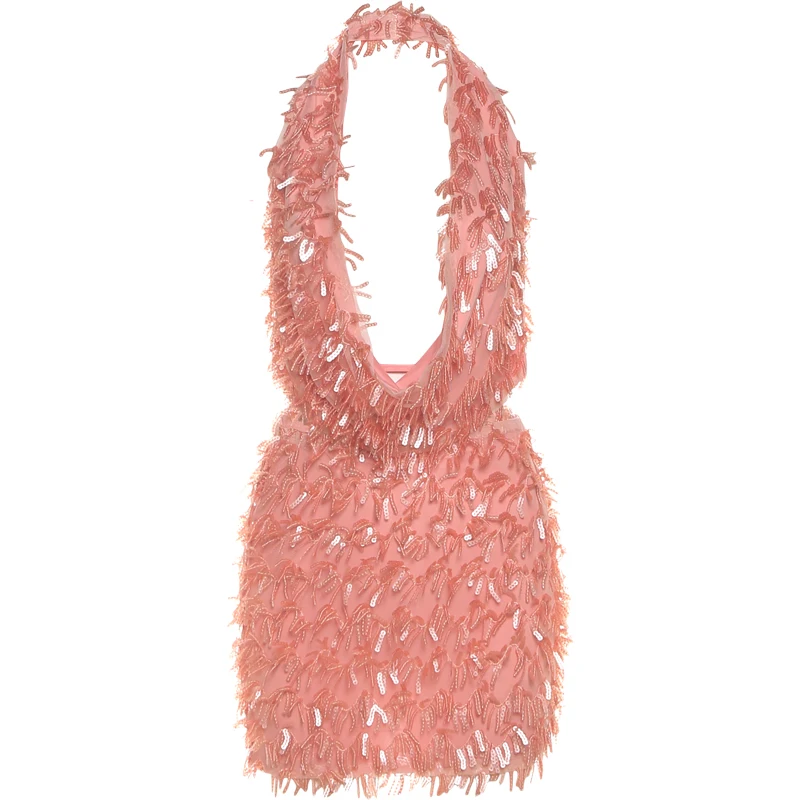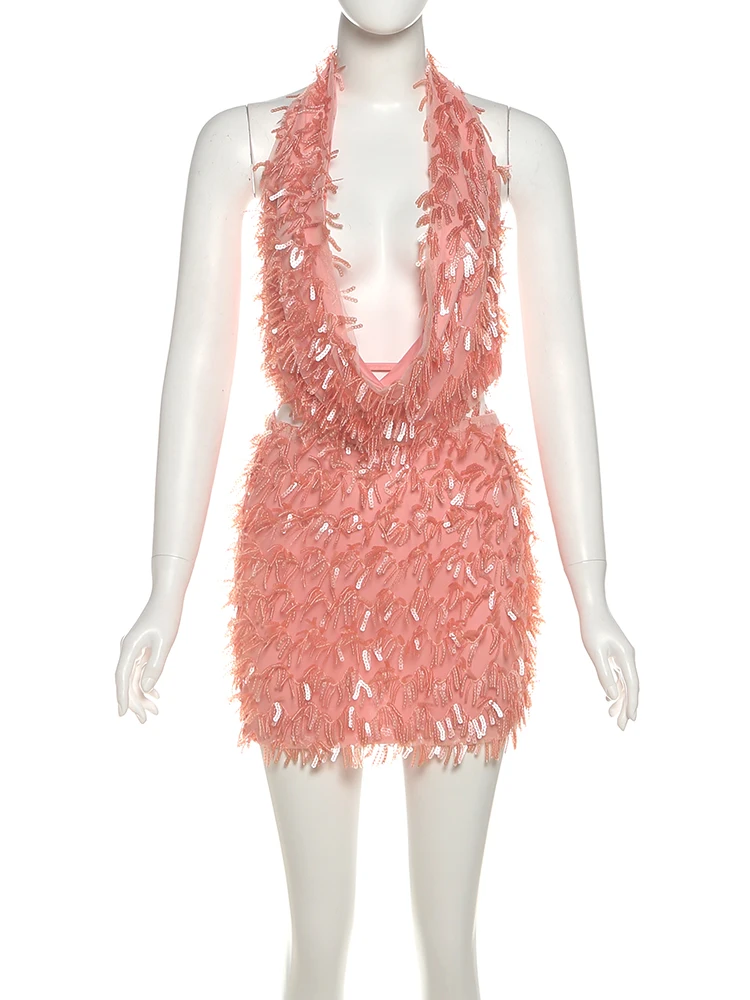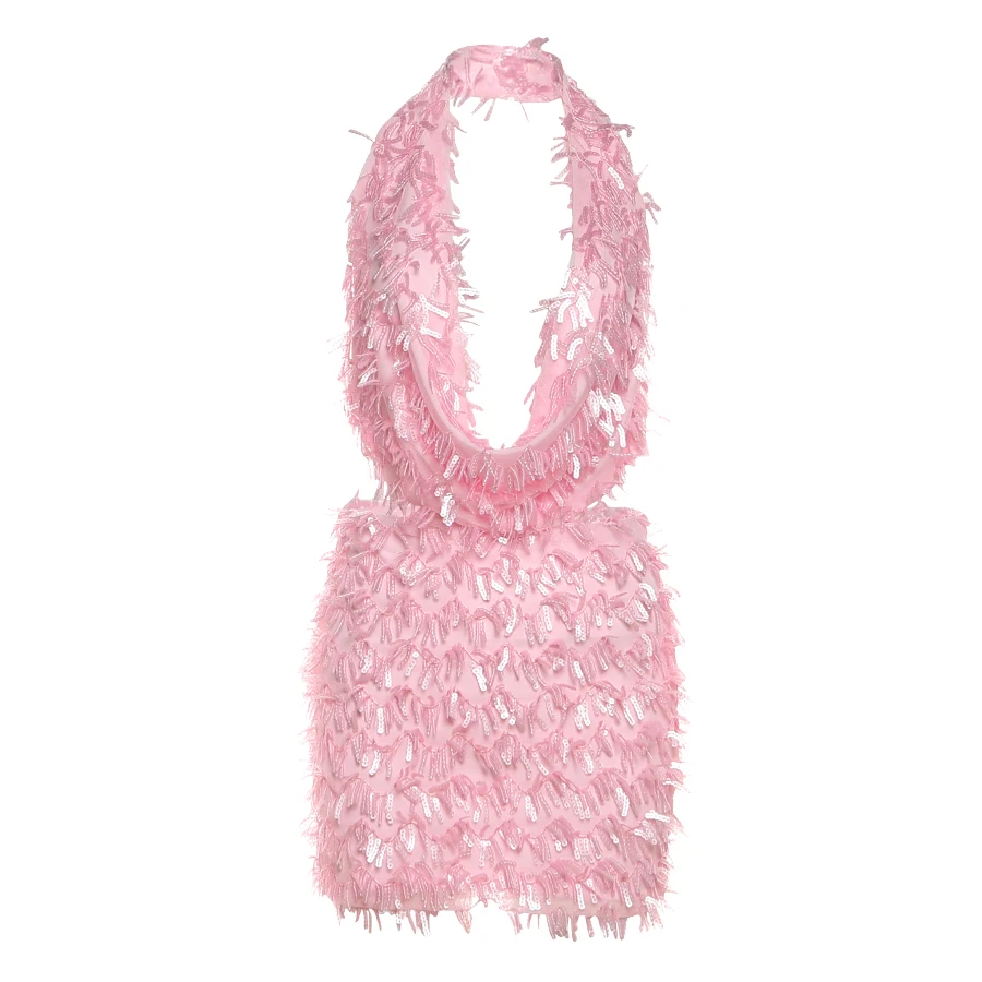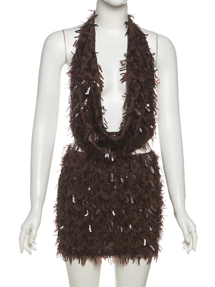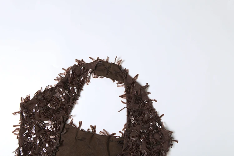 Weird Puss Sequin Tassels 2 Piece Set Women Sexy Swing Collar Tank Tops+Peach Hip Skits Midnight Summer Birthday Party Clubwear